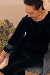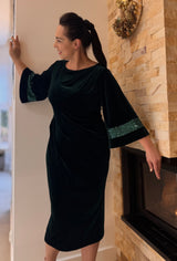Szmaragdowa sukienka z weluru z elementem cekinowym